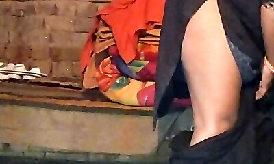 Indian house wife bathing outside with sex