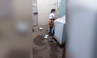 付给一个年轻的女佣只穿内裤打扫卫生. 安纳霍梅克斯